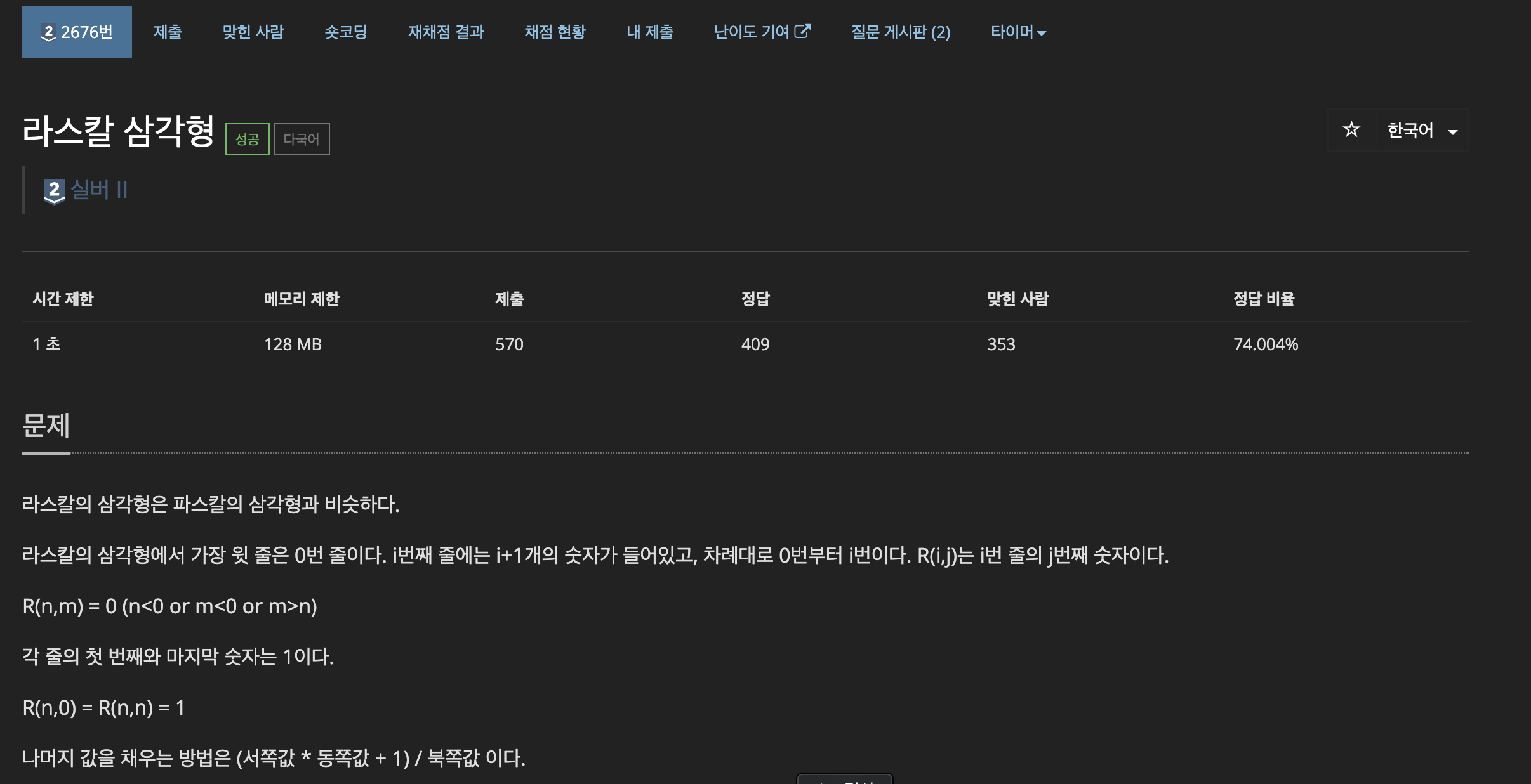 첫번째로, $R(n,m)$을 계산함에 있어 $if m > n$ then $R(n,m) = 0$ 이라는 점이겠다.